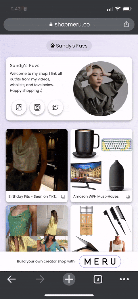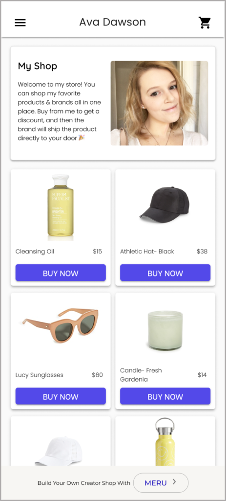 Users can browse all products the creator recommends in one place without having to click back and forth in their linkt.ree. It’s an easier browsing & shopping experience.