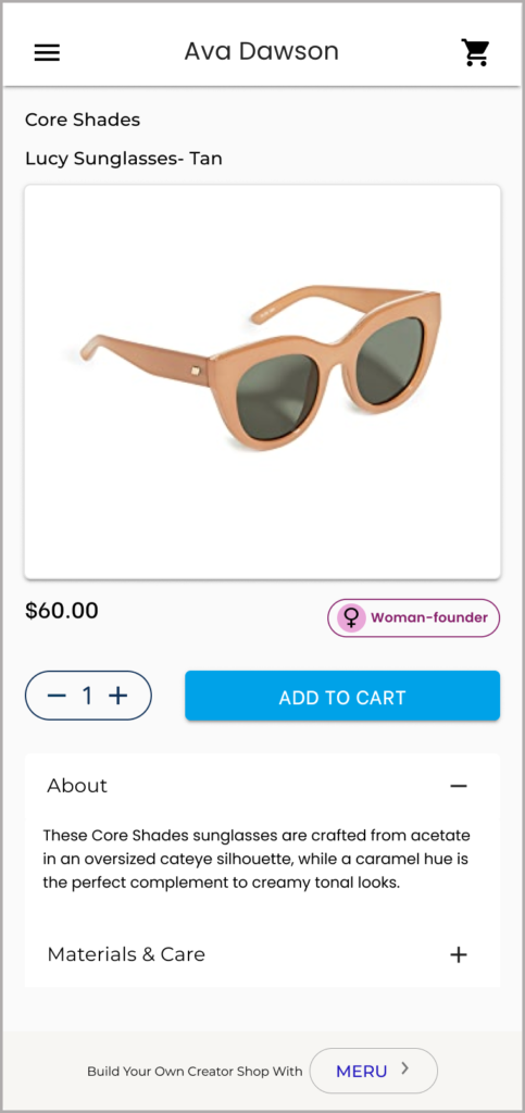 The thing that makes Meru stand out is the ability to checkout in one place even if the items are from different brands/vendors. (Although the CTO is still working out the logistics of this on the backend, I still wanted to be able to show that flow so I could glean interest during user interviews).