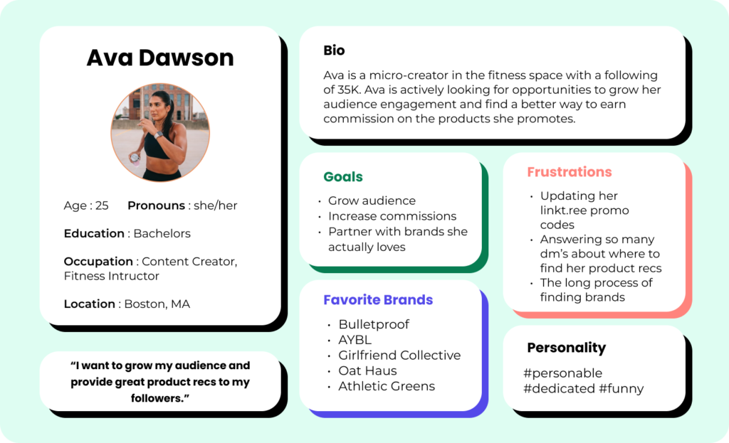 The current influencer marketing model is broken. Today, brands bank on 1-2 “white whales” (e.g. the Kim Kardashians of the world) when in reality we believe there’s a huge long-tail opportunity that’s overlooked. The “sleeping giant” influencers may have lower follower counts, but they receive better engagement and conversion. Picture the mom in Ohio who shares her DIY projects on Instagram. Or, the self-described “below average runner” who posts her workouts on TikTok. Our fundamental belief is that people want to buy from people they trust.