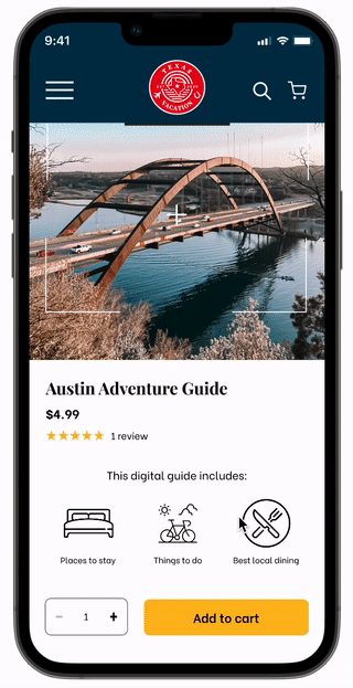 It wasn’t particularly clear what the product was before and all the information was buried at the bottom of the description. So I added these icons so customers can understand right off the bat what the guide includes AND that it is a digital guide. I also made the main call to action button yellow to stand out a bit more. The shopping cart is consistent with the Shopify checkout process, so the user will be already be familiar with this pattern.